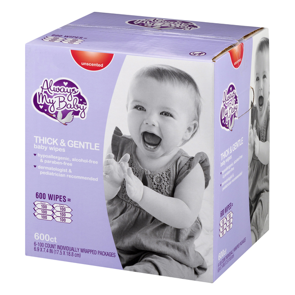 Always My Baby Thick Gentle Baby Wipes Unscented 100 Ea Ct 6 Pk 600 Ct Box Giant