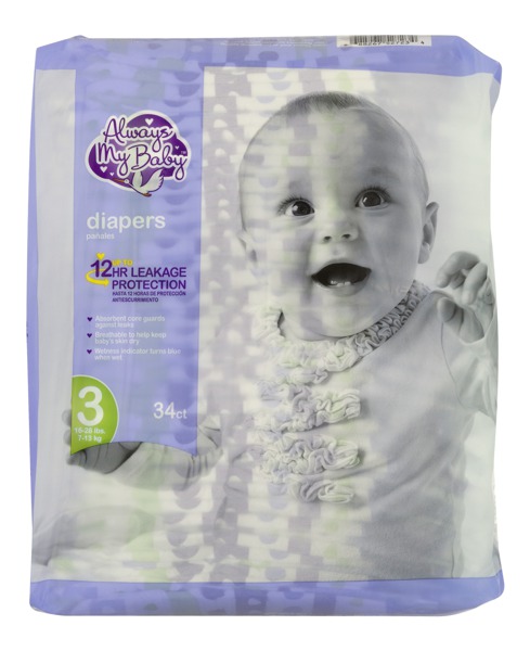 Listexonline Always My Baby Diapers Size 3 - 32 CT Always My Baby688267155536. Our most absorbent diaper ever. Up to 12 hour protection.